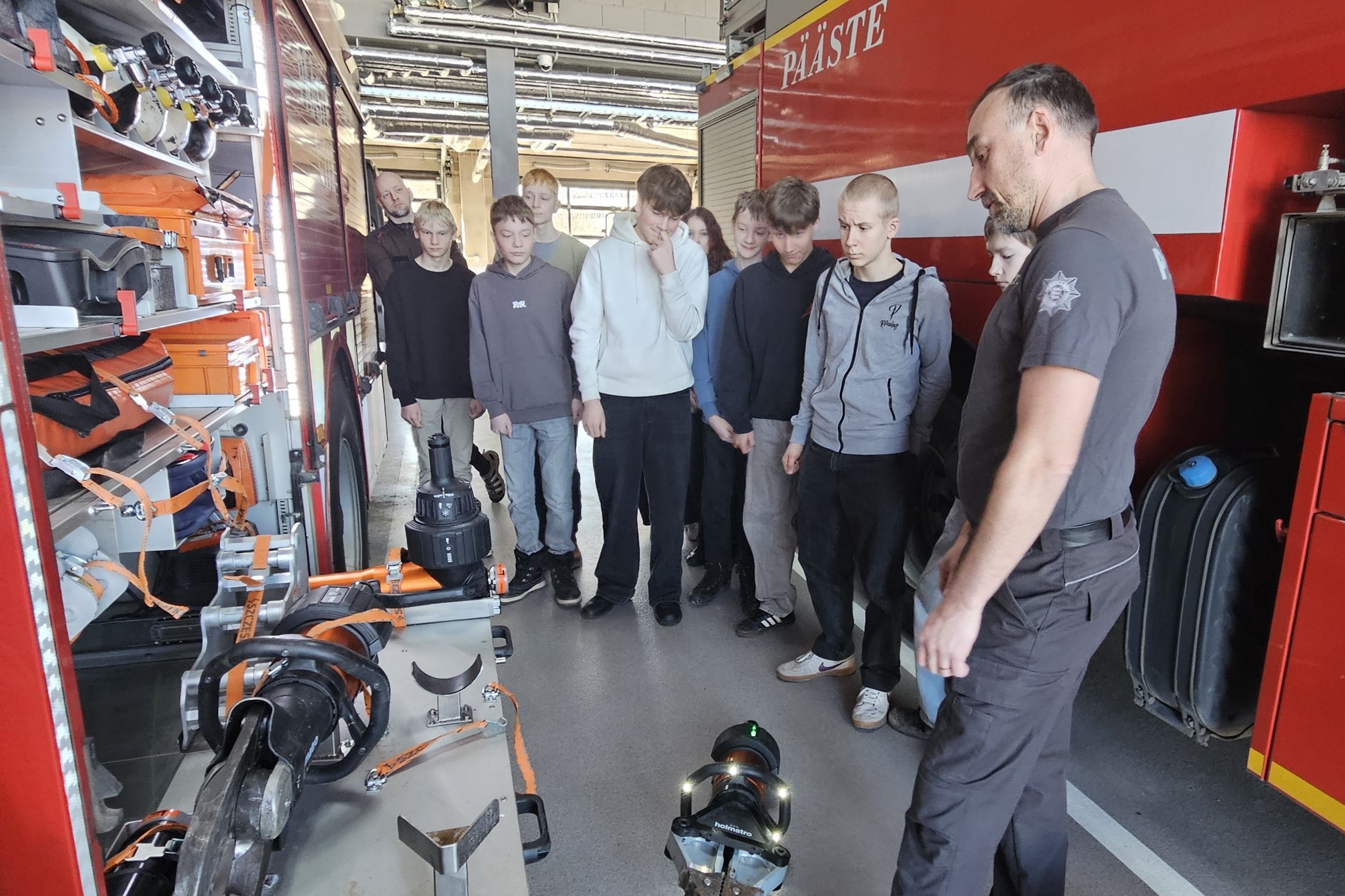 Tund aega kestnud koolitusele järgnes ringkäik päästekomando uutes ruumides ning tehnika ja varustuse tutvustus. Huvi ja põnevust jagus kõigile.