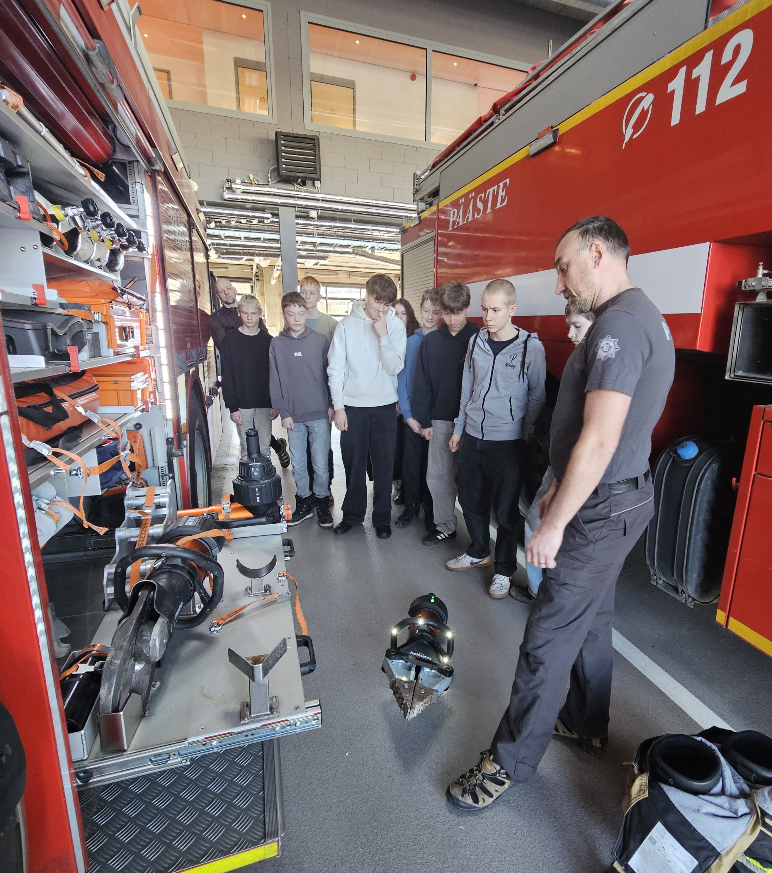 Tund aega kestnud koolitusele järgnes ringkäik päästekomando uutes ruumides ning tehnika ja varustuse tutvustus. Huvi ja põnevust jagus kõigile.